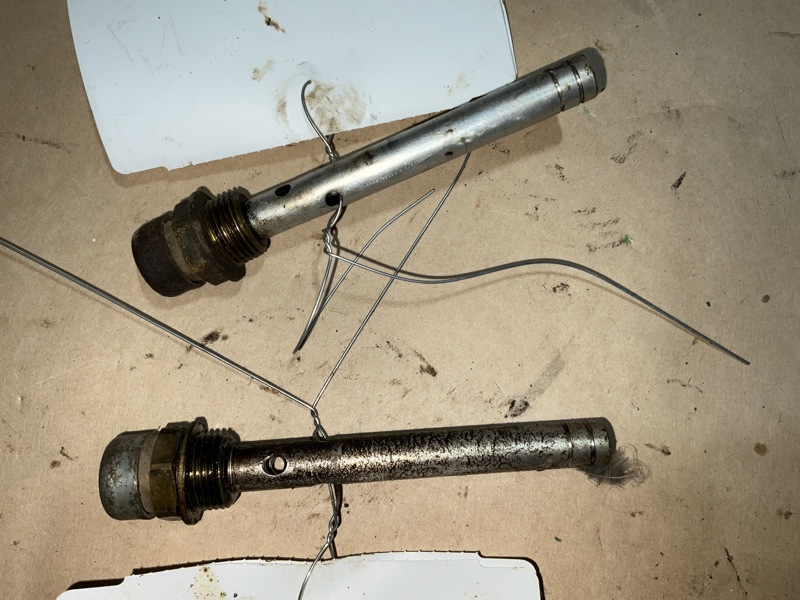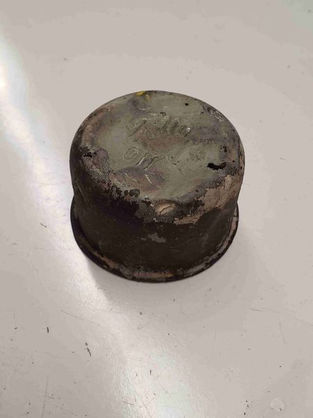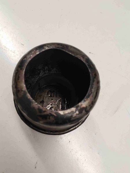 Bottom is bent up, still holds on the pipe okay. Inside is dirty, not rusty.